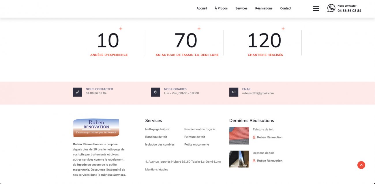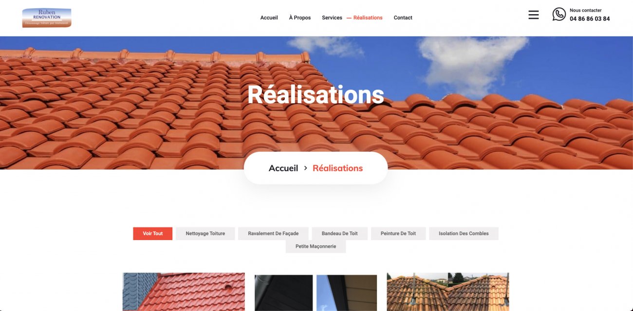 Site internet vitrine de présentation de l'activité de démoussage de toiture de l'entreprise Ruben Rénovation